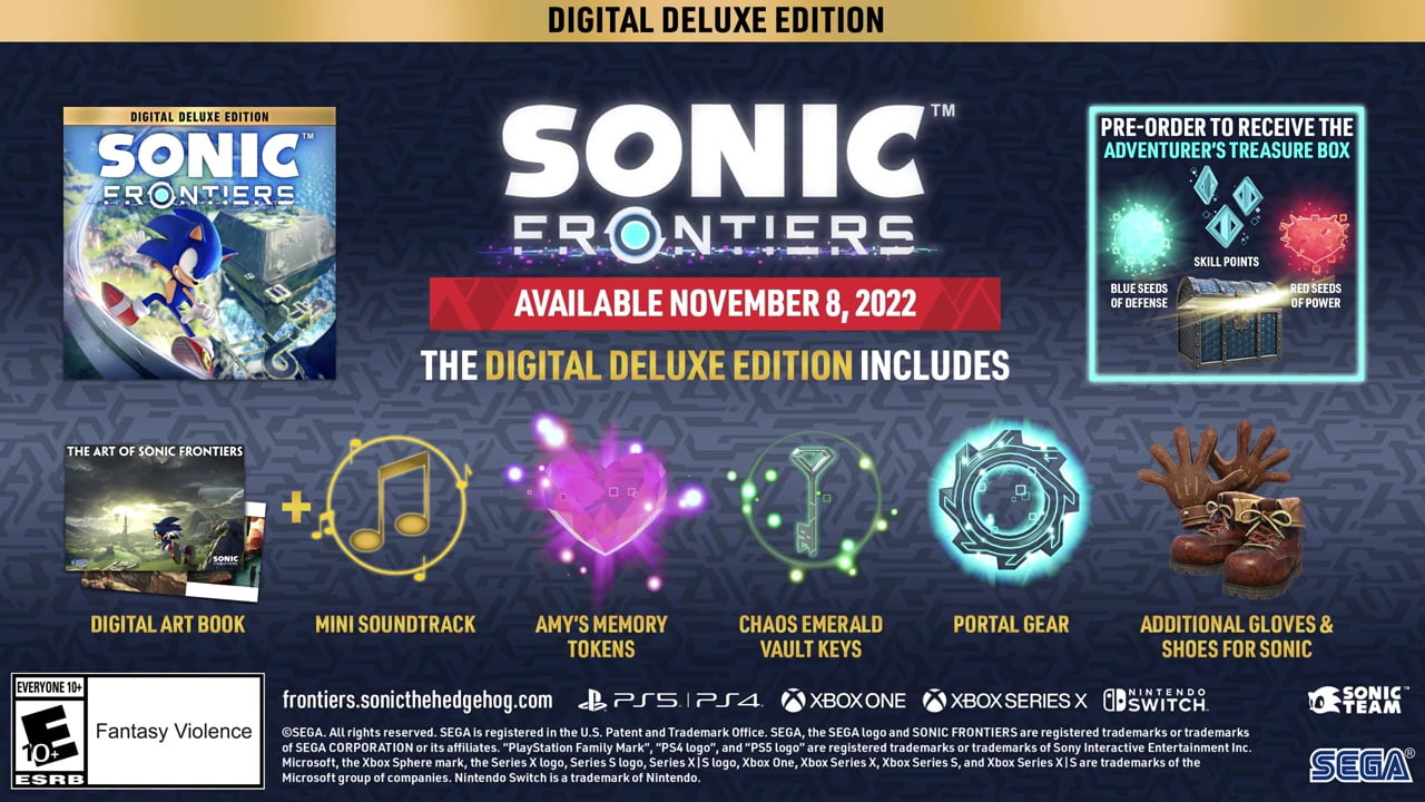 The trailer shows us a better look at the skill tree and abilities that Sonic can use in this game – such as the much beloved Drop Dash and new moves like Wild Rush; as well a better look at one of the Ares Island’s titan bosses. At the end of the trailer there’s also more details on what the Digital Deluxe Edition of the game will contain.