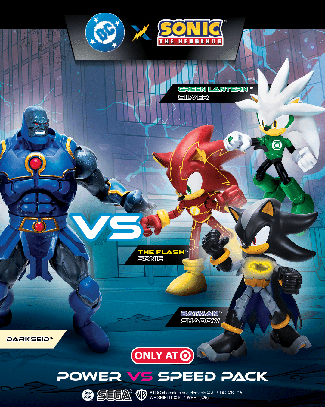 Based on the hit five-issue comic book miniseries published by DC Comics, the toy line includes reimagined versions of Sonic and friends teaming up with the Justice League to stop Darkseid’s dimensional invasion. The figures are part of a broader multi-platform DC x Sonic partnership running through 2026.