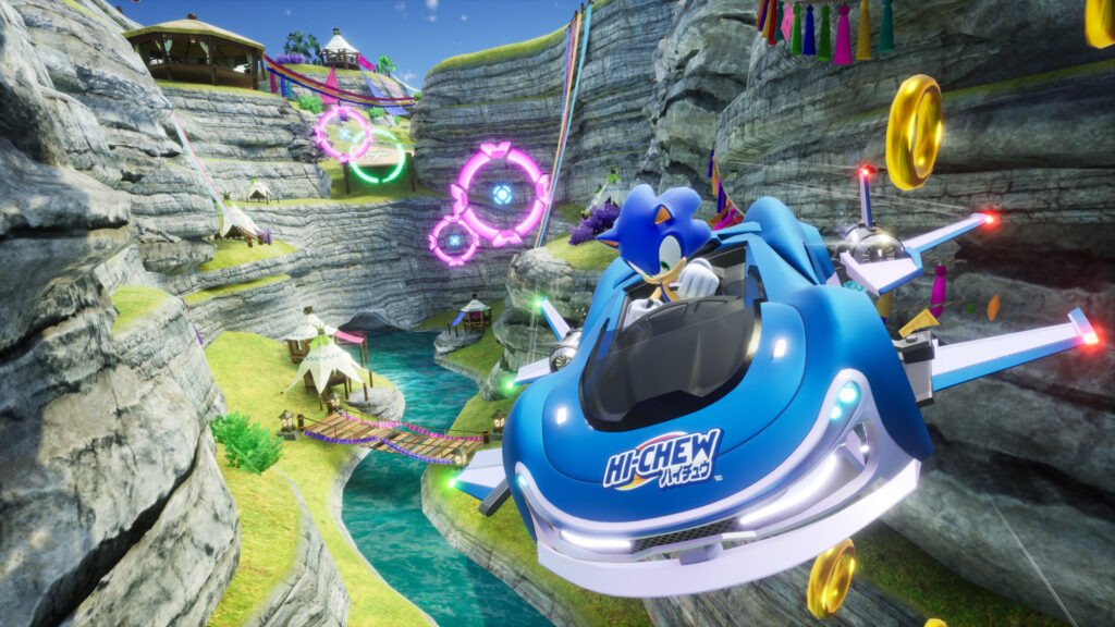 In Sonic Racing: CrossWorlds, all players can decorate their vehicles with the same collaboration stickers — including V Jump (Shueisha), Demae-can, BEYBLADE X, and Hi-Chew (Morinaga Confectionery). With over 70,000 customization combinations across colors, materials, and parts, racers can create their own unique machines.