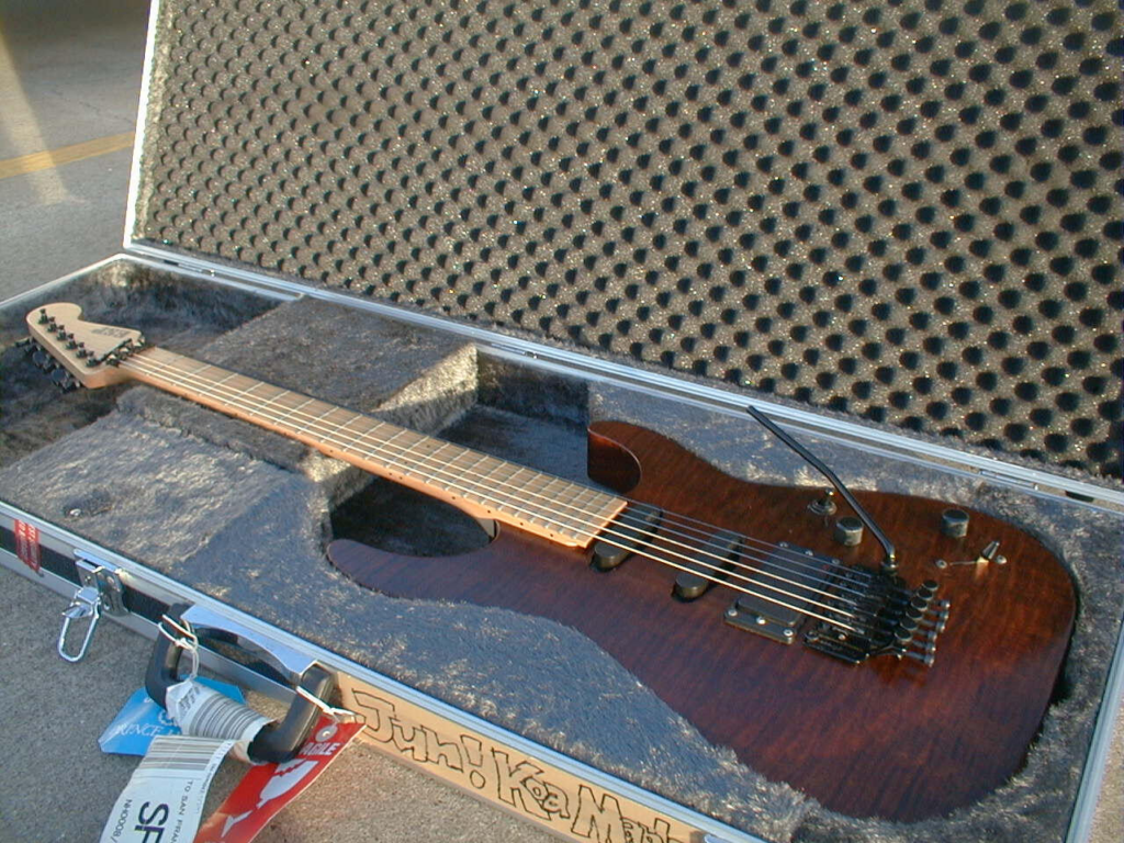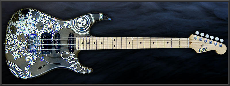 Several of Senoue’s guitars were built as direct extensions of Sonic’s world. His black ESP “SONIC” guitar, first unveiled during the Sonic Adventure era, features Sonic’s eye and grin on the body and has been used live for many of the franchise’s most recognizable songs. An ESP Viper themed around Shadow the Hedgehog was tuned specifically for heavier material and used primarily for “I Am… All of Me” and “With Me.” For Sonic and the Black Knight, ESP produced a custom “Black Knight” guitar featuring artwork from the game itself, which Senoue debuted publicly at Tokyo Game Show in 2008 while performing “Knight of the Wind.”