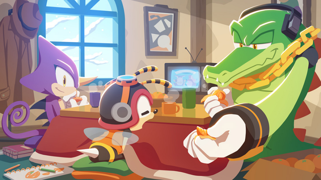 the members of the Chaotix Detective Agency have just bought a kotatsu