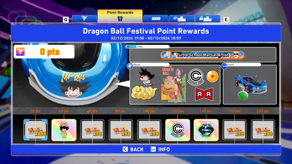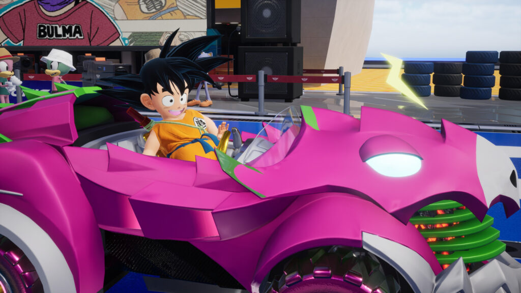 The in-game festival theme has also been fully redesigned. The Super Monkey Ball Festival is replaced with a Dragon Ball Festival aesthetic, featuring custom decals inspired by Capsule Corp, the Red Ribbon Army, and the Dragon Balls. Players can swap the horn sound to the Dragon Radar ping, and several music tracks have been replaced with instrumental versions of “Makafushigi Adventure” and other Dragon Ball themes.