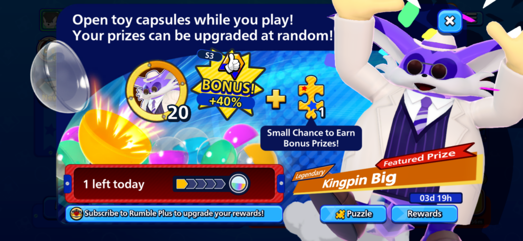 Puzzle pieces can be combined to complete themed puzzles that grant additional prizes such as Red Star Rings. Capsule rarity can also increase when opened, offering chances at more valuable rewards.