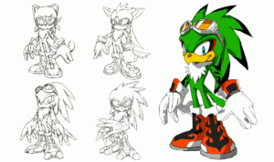 Jet was created for Sonic Riders as a rival to Sonic the Hedgehog in the field of high-speed Extreme Gear racing. According to game designer Takashi Yuda, Jet and the rest of the Babylon Rogues were conceived by Sonic Team as “air pirates” who would serve as Sonic’s new rivals.[9]Sega Talks Sonic Riders. GameSpy. . Archived version