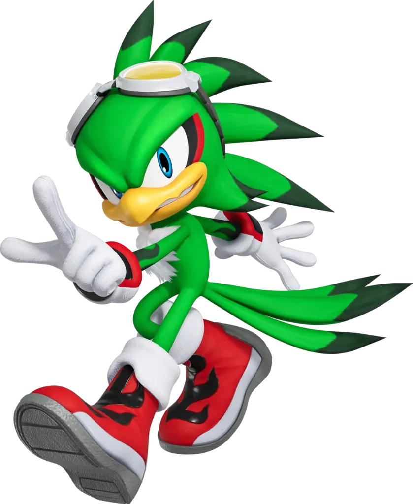 Within the broader series, Jet is notable for being the second green bird character with red shoes to be introduced, following Bean the Dynamite from Sonic the Fighters. His role, design, and competitive attitude were built around contrasting Sonic’s reputation as the fastest on foot with Jet’s confidence as a master of speed in the air.